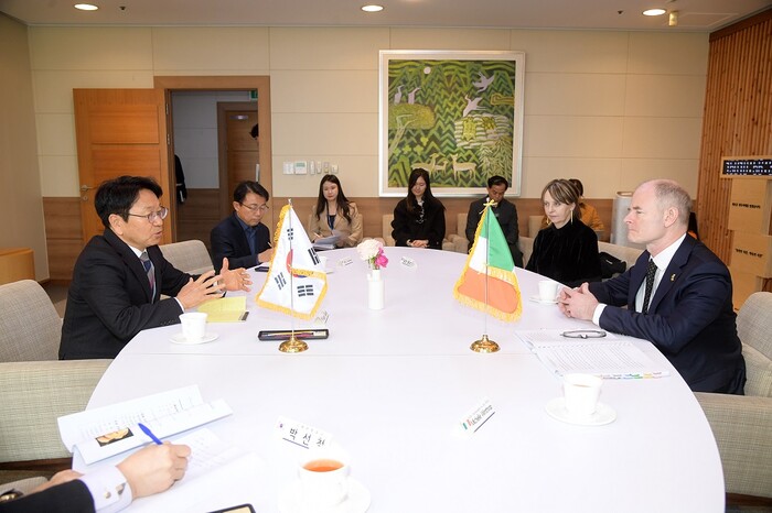[광주=정찬남 기자] 강기정 광주광역시장은 17일 오전 시청에서 오시안 스미스(Ossian Smyth) 아일랜드 공공지출 및 개혁부 차관을 접견, 민주주의 가치에 대해 공유하고 도시 간 협력방안 등을 논의했다.