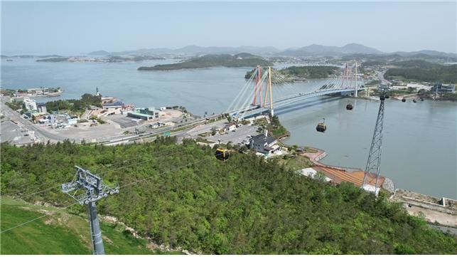 | ▲ 명량해협을 가로지르며 역사의 현장을 체험하게 되는 '명량케리블카' 운행 모습 / 사진=명량해상케이블카 제공 |