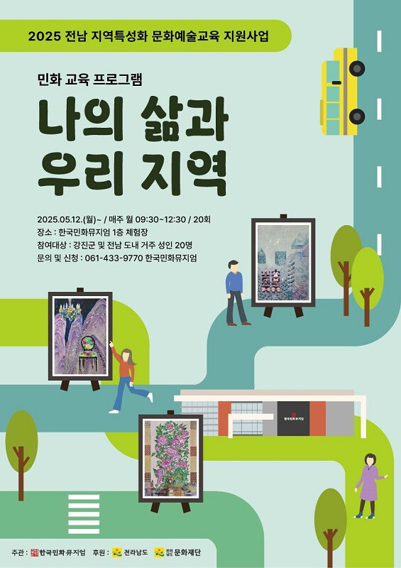 지역특성화 문화예술교육은 전라남도와 (재)전라남도문화재단의 후원을 받아 진행되는 사업이다. 이 사업은 지역의 우수한 문화 자원을 바탕으로 한 문화예술교육 프로그램을 운영해 모든 연령과 세대가 수준 높은 문화생활을 누릴 수 있도록 한다. 한국민화뮤지엄은 지난 2024년에도 해당 사업에 선정돼 ‘민화 강진 특보’ 프로그램을 운영했다.