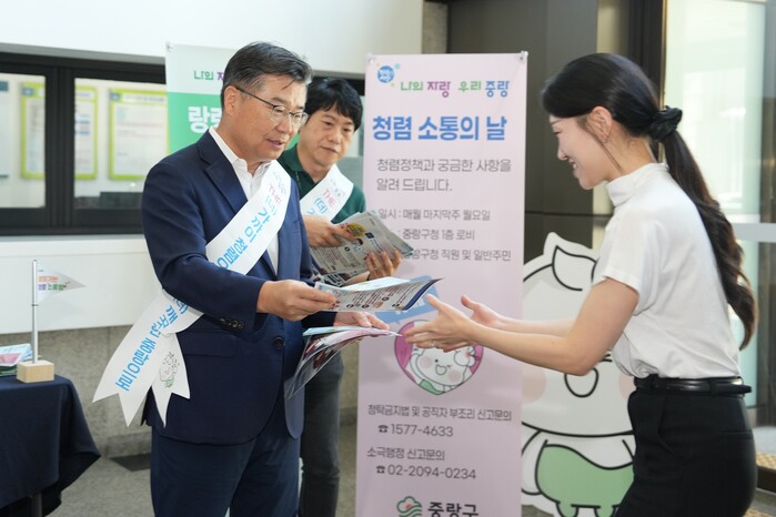 특히, 이번 행사는 추석 명절을 앞두고 류경기 구청장이 직접 나서 청탁 및 금품수수 금지와 공무원 부조리신고센터를 홍보하는 등 ‘청렴 소통의 날’ 운영에 함께했다. 이를 통해 더욱 청렴한 중랑구를 만들기 위한 의지를 다지고 조직 내 청렴 문화 확산을 독려했다.