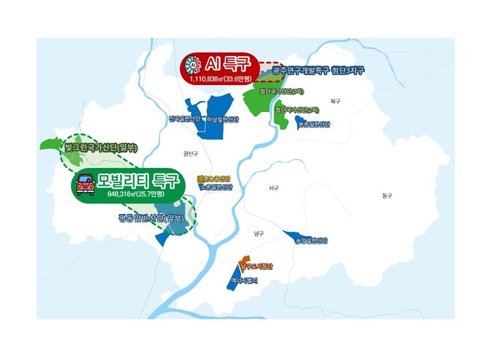 기회발전특구 신청 면적은 빛그린산단, 연구개발특구 첨단3지구 등 약 59만 평(195만9154㎡) 규모이다. 광주시는 모빌리티와 인공지능 2대 산업 중심의 1차 특구 지정을 통해 관련 기업 유치와 산업 육성에 박차를 가하겠다는 방침이다.
