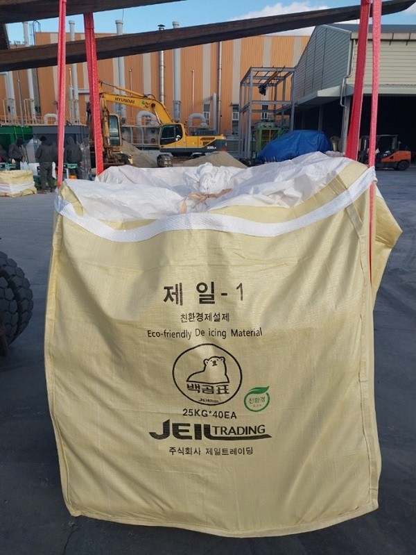 제설염과 염화칼슘 수업 및 유통 일원화로 제설제 시장 점유율을 높이고 있는 제일트레이딩이 최근 친환경 제설제 판매를 본격화했다.