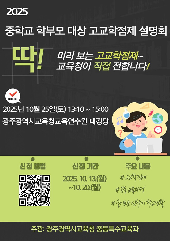 | ▲ 2025 중학교 학부모 대상 고교학점제 설명회 포스터 / 광주광역시교육청 제공 |