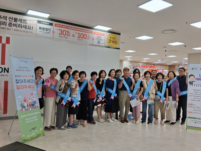 | ▲ 의왕시 내손1동 지역사회보장협의체는 9월 17일 내손1동 롯데마트 의왕점에서‘복지사각지대 발굴 및 1004나눔 후원 모금’캠페인을 진행했다 /사진제공=의왕시 |
