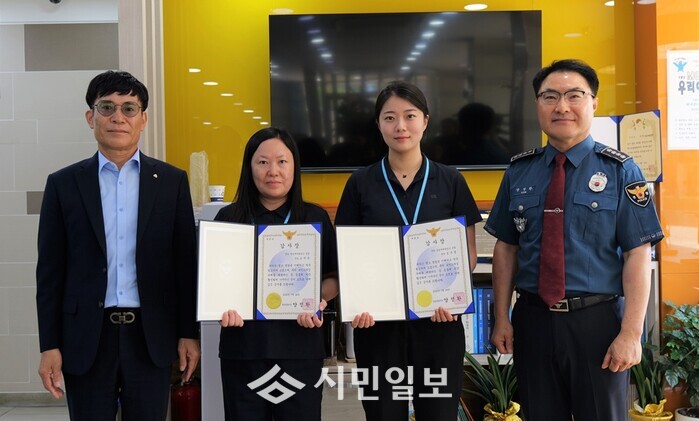 이번 사례는 지난 11일 수사기관을 사칭한 보이스피싱 조직원에 속은 고객이 은행창구에서 고액을 이체하며 불안해하는 모습을 보고 수상함을 느껴 즉시 112에 신고해 피해를 예방하는데 기여했다.
