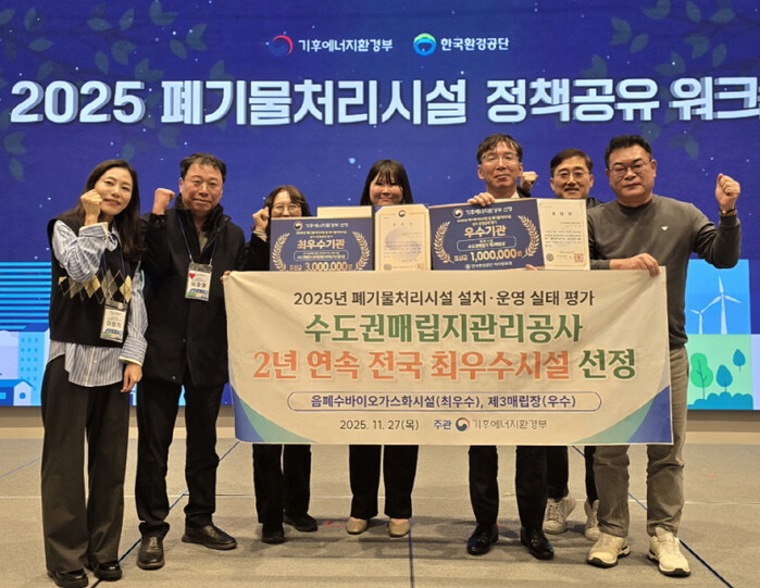 먼저 공사는 27일 열린 기후에너지환경부 주관 ‘2025년 폐기물처리시설 설치·운영 실태평가’에서 유기성 폐자원시설 부문 최우수시설을 비롯해 매립시설 부문 우수시설로 선정되는 영예를 안았다.