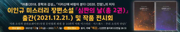 이인규 작가의 세 번째 장편소실인 심판의 날은 미스터리·서스펜스·추리 소설로 심판의 날 1, 2-화형, 죽어 마땅한 자들로 구성됐다.