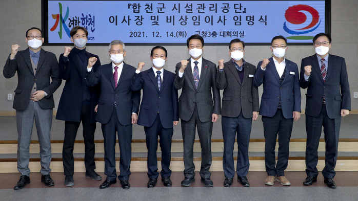 합천군(군수 문준희)은 이달 설립하는 합천군 시설관리공단을 이끌어갈 초대 이사장에 조수일(전 합천군 기획예산실장)씨를 임명했다. 비상임이사로는 박홍제(전 군의원), 곽길신(수자원 박사), 임종훈((주)이든 대표이사)씨 등 3명을 임명했으며, 임명된 임원의 임기는 2021년 12월 14일부터 2024년 12월 13일까지 3년이다.