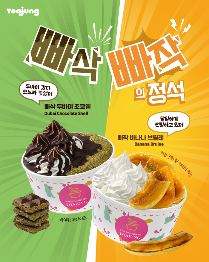 이번 신메뉴는 ‘스트레스를 날려버릴 바삭한 즐거움’이라는 콘셉트로, 기존 토핑들과는 차별화된 색다른 맛을 제공한다. 두바이 초콜릿과 신선한 바나나 생과일을 활용한 특별한 토핑 두 가지를 선보였다.