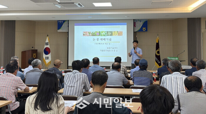 지난 2일, 군 농업기술센터는 북삼면(작천·병영·옴천) 지역의 논콩 재배 농업인 80여 명을 대상으로 논콩 재배기술 교육을 진행했다. 작년말부터 시작된 이번 논콩 교육은 5번째 집합교육으로 지역별 맞춤형 현장 교육을 병행해 논콩 재배의 안정성과 생산성을 높였다,