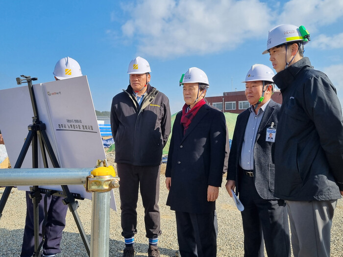 조규일 진주시장은 13일 이원화된 제1·2정수장의 통합 및 시설현대화를 추진 중인 ‘노후정수장 정비사업’ 현장을 찾아 관계자들을 격려하고 사업현장을 점검했다.