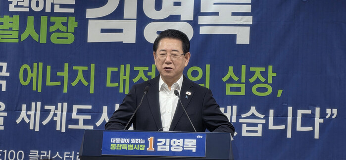 [남악=황승순 기자]김영록 민주당 전남광주특별시장 예비후보는 전남 서부권을 세계가 주목하는 RE100 기반 ‘글로벌 에너지·반도체·해양 허브’로 육성하겠다는 구상을 밝혔다.