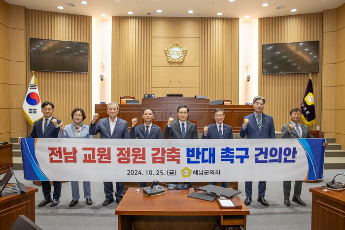 한편, 해남군의회 외에도 전남 학부모연합회에서 교원 정원 감축 반대 서명운동을 펼치고 있으며, 교육대학 및 교원단체 등에서도 교육부의 일방적인 감축 통보에 대한 반대 여론이 확산되고 있다.