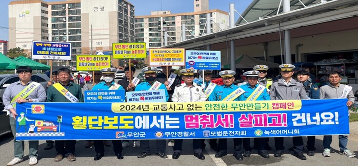 이날 캠페인은 무안군이 주최하고 무안경찰서, 모범운전자회, 녹색어머니회 등이 참석하였으며, 민관이 함께 ‘함께 더 안전한 무안군’의 구호로 교통사고 예방을 위한 교통안전 의식 고취, 홍보물품 배부, 거리 행진을 진행했다.