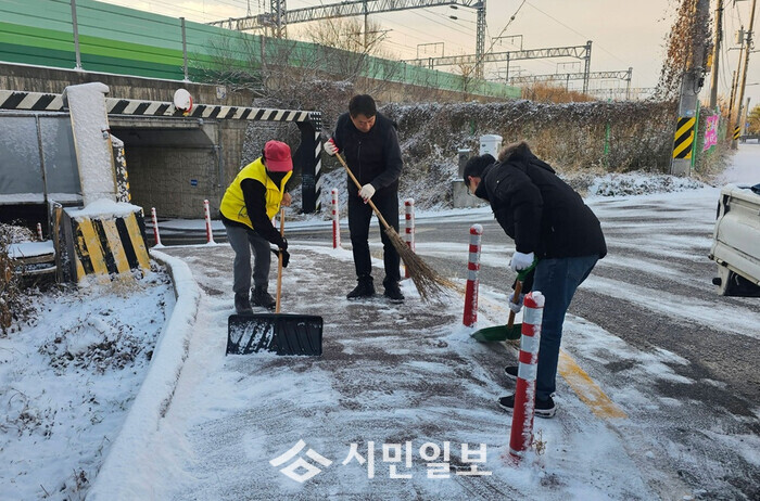 대설주의보가 해제된 이후에는 ‘도로 살얼음(블랙아이스)’으로 인한 안전사고가 발생하지 않도록, 새벽 시간에 살포기, 굴삭기 등 장비를 동원한 제거 작업을 집중적으로 진행했다.