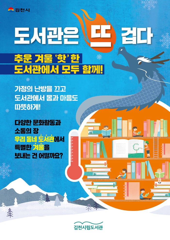 이순영 시립도서관장은 “도서관이 겨울철 몸과 마음을 따뜻하게 녹일 수 있는 공간이 될 수 있도록 아낌없이 지원하겠으며, 지역사회에서 가장‘핫’한 곳으로 도약할 수 있도록 최선을 다하겠다.”라고 전했다.