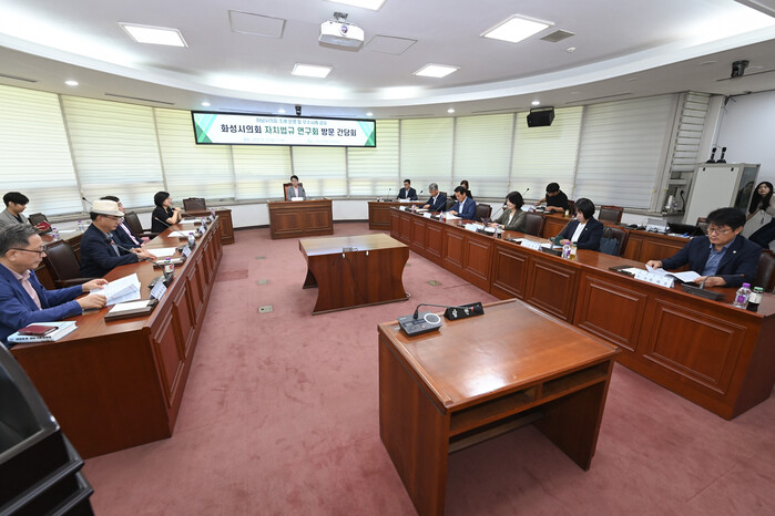 | ▲ 화성특례시의회 의원연구단체인 자치법규 연구회가 12일, 자치법규의 체계적 분석과 정비 방안 마련을 위한 연구의 일환으로 하남시의회를 방문했다(사진은 간담회질의응답 모습)/사진제공=화성특례시의회 |