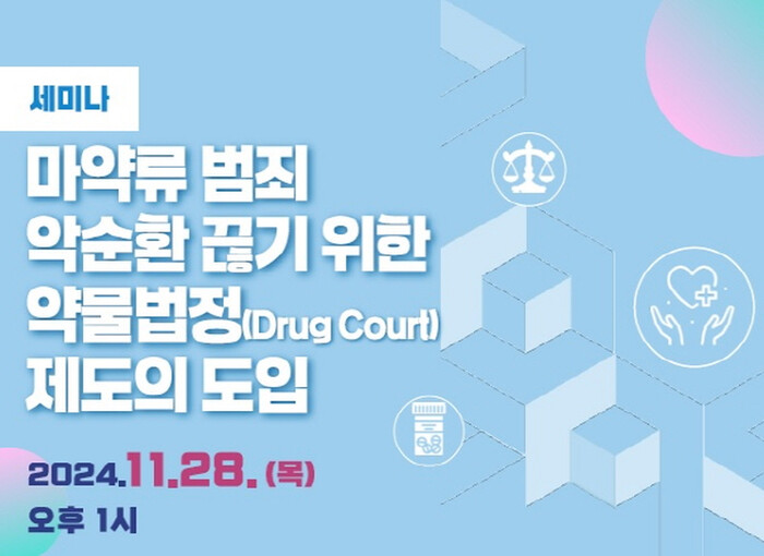 이번 세미나는 사회복지현장에서도 중독 예방과 재활 지원 등에 관심을 가질 필요가 있고 마약류 범죄의 악순환을 끊기 위한 대안의 하나로 재활치료 중심의‘약물 법정’제도를 우리나라 실정에 맞게 도입할 수 있는 방안을 모색하기 위해 마련됐다.
