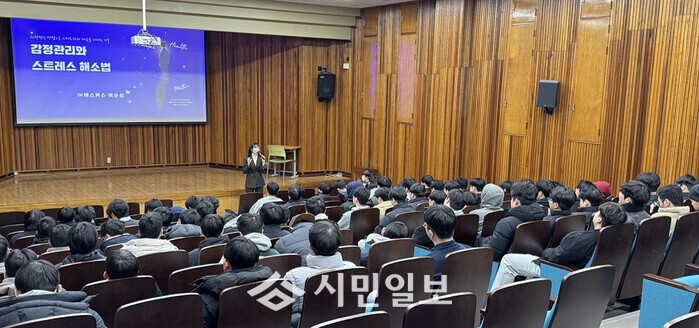 이날 특강 강사로는 커뮤니케이션 전문 강사인 옥순심 씨를 초청해 입시 준비로 지친 학생들에게 스트레스 관리법을 안내하고 학업 부담에서 벗어나 마음의 여유를 찾을 수 있도록 도왔다. 또한 예비 사회인으로서 자신의 감정을 이해하고 조절하는 방법에 대해 실질적인 조언을 전하며 유익한 시간을 가졌다.