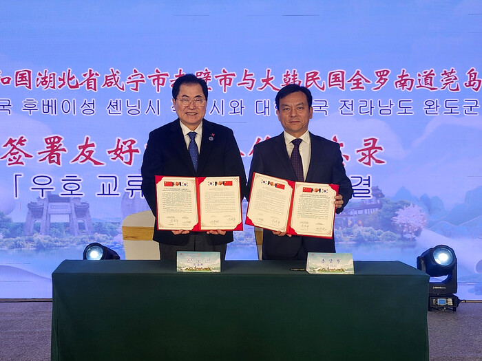 [완도=김현종 기자]완도군은 지난 1일부터 4일까지 중국 후베이성 적벽시를 방문해 양 도시 간 우호 및 교류를 강화하기 위한 업무 협약을 체결했다.