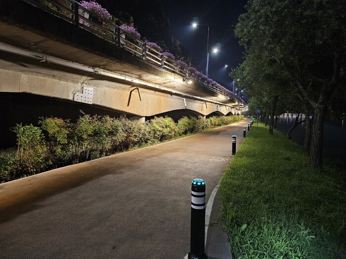 또한 안전운행, 속도제한, 충돌주의 등을 표시하는 안전 로고젝터 38개소, 볼라드형 및 바닥형 친환경 태양광 표지병 1851개를 설치하여 야간 경관개선 및 안전사고 예방을 도모했다.