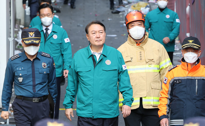 윤 대통령은 "국민의 생명과 안전을 책임지는 대통령으로서 마음이 무겁고 슬픔을 가누기 어렵다"며 "정부는 오늘부터 사고수습이 일단락될 때까지 국가 애도 기간으로 정하고 국정의 최우선 순위를 사고 수습과 후속 조치에 두겠다"고 했다.