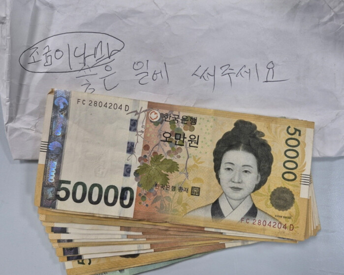 | 익명의 기부자가 강화군청에 남긴 5만 원권 현금 [사진=강화군] |