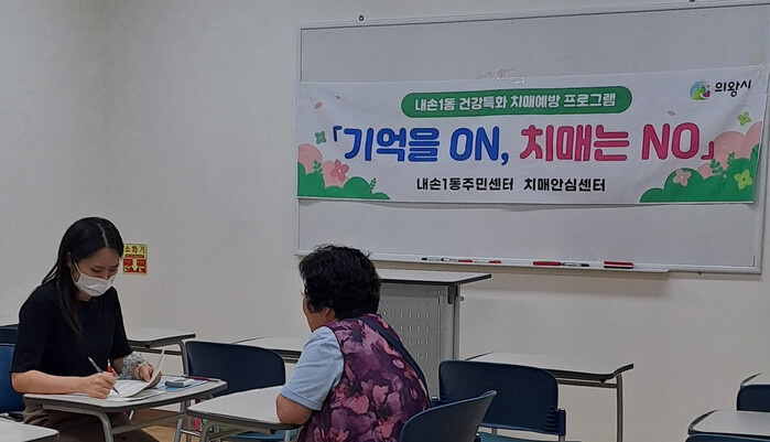 | ▲ 의왕시 내손1동주민센터는 의왕시 치매안심센터와 협력해 어르신 치매예방 프로그램‘기억 ON, 치매는 NO’ 진행 모습 /사진제공=의왕시 |