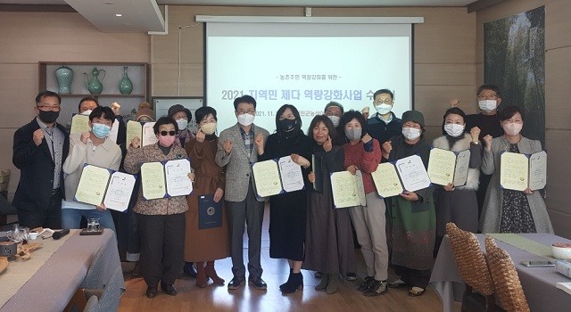 [강진=정찬남 기자] 지난 11월 27일 강진군 성전면 이한영 전통차문화원에서 2021년 제1기 ‘제다역량강화 중급심화과정’ 20명에 대한 수료식이 열렸다.