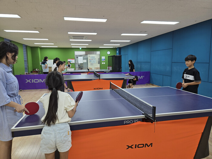 이에, 올해 6월부터 어린이들의 건강 증진을 위한 ‘주말 이린이 탁구 특강’을 개설해 운영하고 있으며, 탁구 특강은 개강 후 직후부터 아이들의 흥미에 맞춘 탁구 강습으로 센터 인근 학부모와 아동들에게 많은 호응을 이끌며, 8월부터는 추가 강좌까지 마련돼 운영되고 있다.