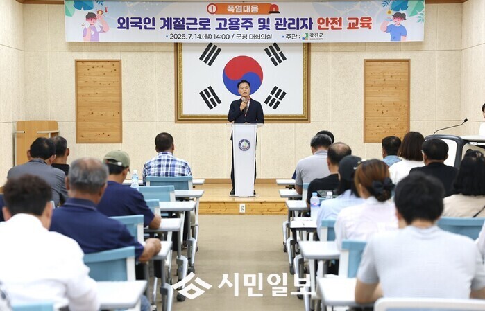 [강진=정찬남 기자] 전남 강진군이 지난 14일 강진군청 대회의실에서 근로자 입국 고용주 및 공공형 인력중개센터 관리자 25명을 대상으로 폭염 대응을 위한 외국인 계절근로자 안전교육과 고용주 준수사항 교육을 실시했다.