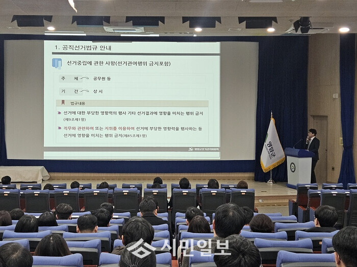 교육에서는 배기범 영암군선거관리위원회 사무과장이 강사로 나와 공무원의 선거중립의무 관계법과 주요 제한·금지사례를 중심으로 강의했다.