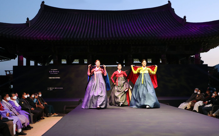 밀양시가 주관한 밀양 환타지아 ‘날 좀 보소. 한복 좀 보소’ 한복패션쇼(디자이너 이영애)가 지난 13일 오후 5시 영남루의 밤을 오색창연하게 수놓았다. 시민을 비롯한 관광객 등 300여명이 참석한 가운데 우리나라 대표 누각이 있는 영남루에서 화려하게 펼쳐졌다