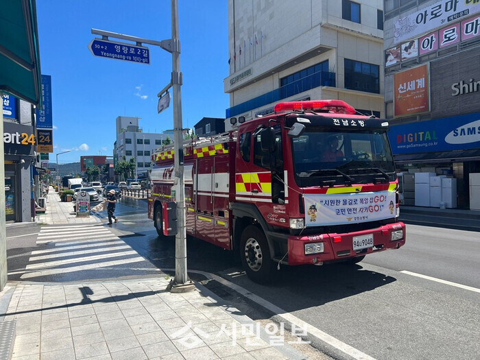 강진소방서는 폭염이 지속되는 동안 살수 차량을 추가 투입하고, 살수 지역을 확대하는 등 적극적인 대응을 이어갈 방침이다.