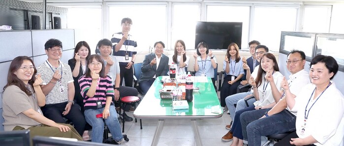 직원 한명 한명의 이름을 부르며 대화를 나눈 강 시장은 “이번 결과가 좋지 않았지만 AI반도체과는 국가인공지능데이터센터 개관, 인재양성 사다리 구축 등 해야할 일이 많다”며 “다시 한 번 힘을 내 뛰어달라”고 격려했다.