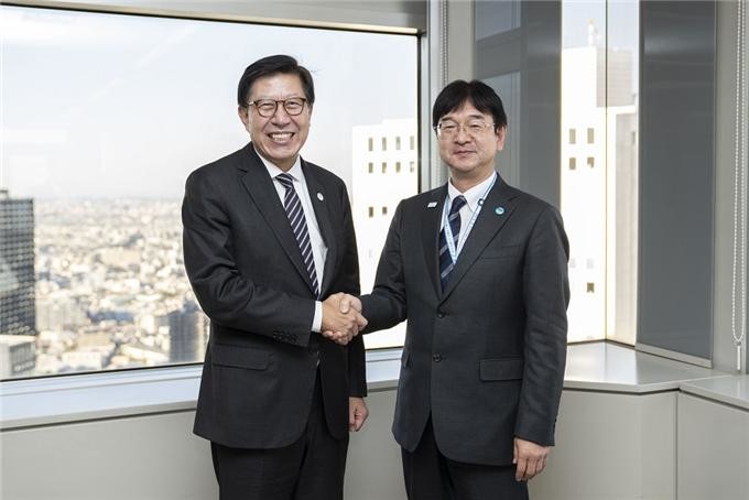 | ▲ (왼쪽) 박형준 부산시장과 (오른쪽)우시오다 쓰토무 도쿄도 부지사의 모습.(사진제공=부산시청) |
