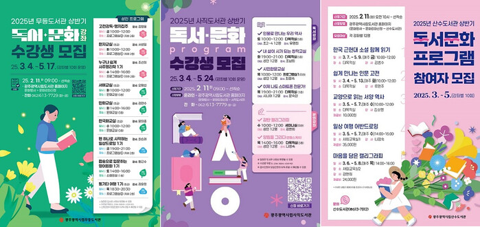 | ▲ 무등,사직,산수도서관 독서문화 강좌 운영 포스터 / 광주광역시 제공 |