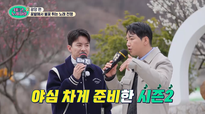 박군과 나태주는 노래방 기기와 상금 100만원, 그리고 황금색의 왕좌를 들고 시즌2 첫 무대를 위해 전남 광양을 찾았다. 오랜만에 만난 제작진이 나태주에게 시즌1의 성공 요인을 묻자 그는 “모든 것이 MC 덕분이다. 바로 박군과 나태주 덕”이라며 너스레를 떨었다. 다른 제작진이었어도 잘 됐을 것이라 생각하느냐는 질문에도 “그냥 우리가 잘해서 잘 한거다”라며 센 대답을 이어가자 지켜보던 박군은 제작진이 삐칠 것이라며 말리기도 했다.