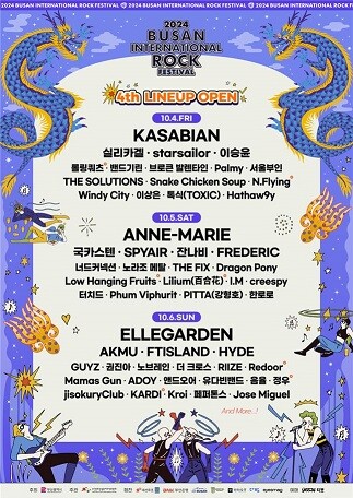 [부산=최성일 기자] 부산시(시장 박형준)는 국내 최장수 록페스티벌인 「부산국제록페스티벌」의 4차 출연진을 공개한다고 밝혔다.