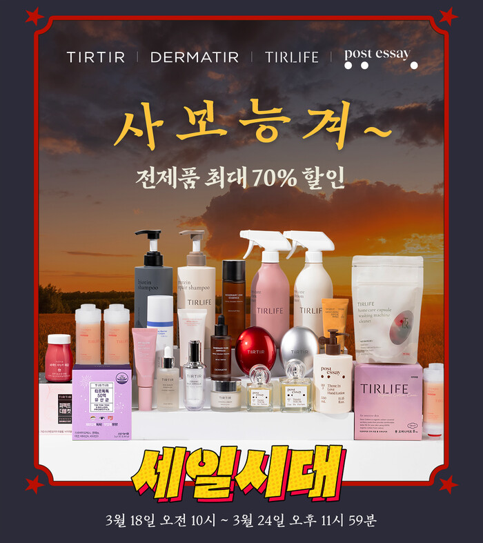 한편 티르패밀리 3월 정기세일 일정과 할인 품목, 이벤트 등에 관한 자세한 내용은 티르패밀리 브랜드 통합몰과 티르티르, 더마티르, 티르라이프, 포스트에세이 각 브랜드의 인스타그램 계정을 통해 확인할 수 있다.