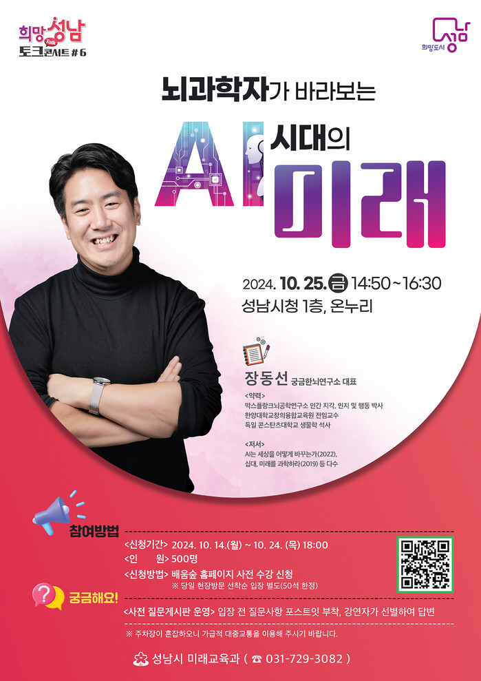 | ▲ 미래교육과-‘뇌과학자가 바라보는 AI 시대의 미래’ 강연 안내 포스터(희망성남 토크콘서트 6강) |