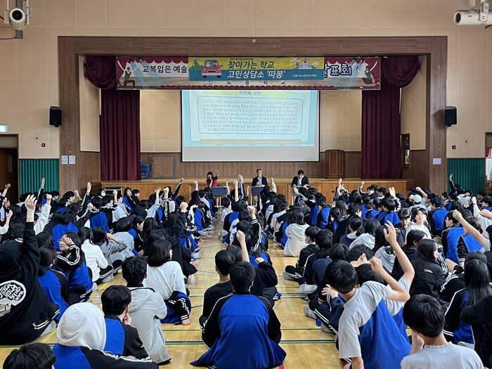 두 번째는 ‘학교 고민상담소 따봉’이다. 중·고등학교 청소년들이 현재 가지고 있는 고민을 접수받아 센터에서 학교로 직접 찾아가 반 단위, 학교 단위로 유쾌한 상담 개입을 하는 프로그램이다. 토크콘서트 방식으로 진행하며 익명성이 보장돼 부담스럽지 않고 재미있게 참여할 수 있다.