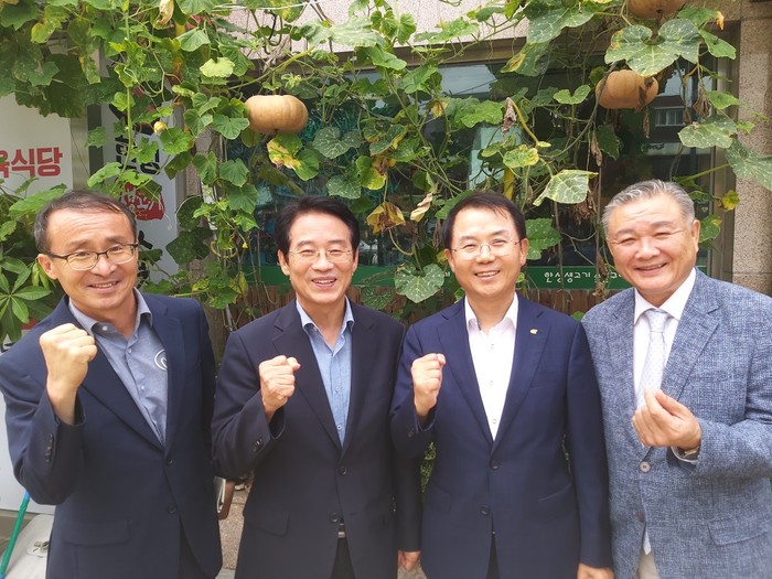 | ▲ 강진원 강진군수(왼 쪽부터 2번)가 지난 10일 강진쌀 등 지역농산물 판로 확대와 초당림 관광명소화를 위한 관계자 협의를 위해 직접 수도권을 찾아 관계자들과 기념촬영을 하고 있다. / 강진군 제공 |