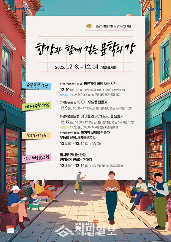 이번 행사는 노벨문학상 수상일(12월 10일)을 전후해 주민들과 노벨문학상의 의미를 나누기 위해 '한강 작가 문학강연', '어린이 문학 체험', '주제 도서 전시', '작품 필사·메시지 작성' 등 참여형 프로그램으로 구성됐다.