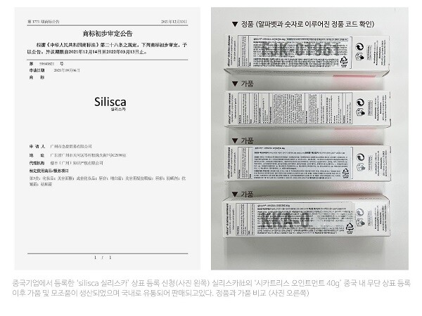 실리스카(주)는 해당 브랜드를 되찾기 위해 전문 특허법인과 함께 '해외상표권 전담 TF'를 만들어 적극 대응하였으며, 2년간의 법적 다툼 끝에 무단으로 선점한 기업의 상표권을 되찾아올 수 있었다. 실리스카(주) 중국내 상표권 등록 절차가 마무리 되는대로 중국에서 무단으로 생산되는 가품 및 모조품에 대한 단속에 나설 계획이라고 전했다.