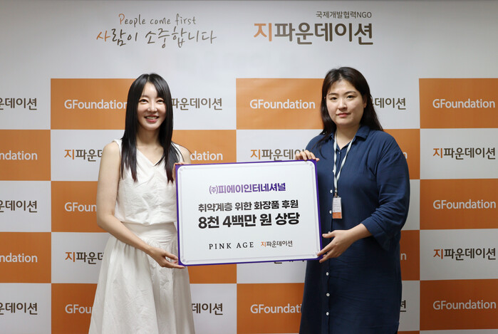 ㈜피에이인터네셔널의 핑크에이지, 화장품 기부를 통해 취약계층을 위한 선한영향력 전해