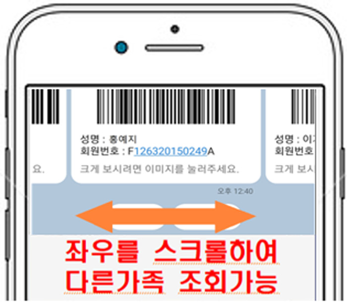 스마트폰에서 도서관 통합 홈페이지를 접속해 해당 기능을 이용하면 정회원으로 등록된 직계가족의 회원번호, 큐알코드 등을 모바일 회원증 형태로 보여준다.