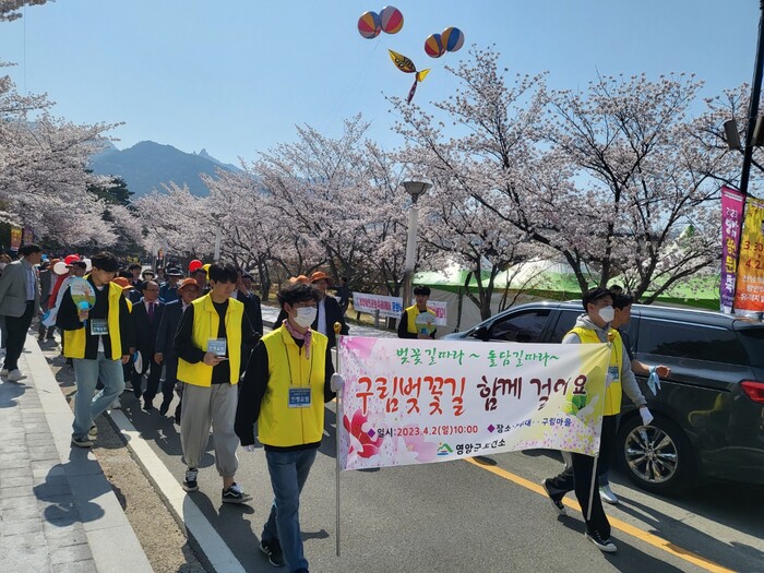 | ▲ 영암군, 지난 2일 군서면 왕인박사유적지에서 2023 영암왕인문화축제의 성공 기원 ‘구림벚꽃길 걷기행사’ 실시 / 영암군 제공 |