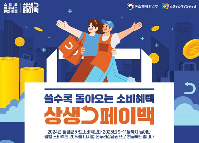 참여 신청은 오는 11월 30일까지 상생페이백 전용 누리집에서 가능하며, 온라인 신청이 어려운 경우 전통시장 상인회, 소상공인지원센터, 은행 창구를 통해 도움을 받을 수 있다. 신청은 한 번만 하면 3개월(9~11월)간 소비 증가분이 자동 반영돼 순차적으로 지급된다.