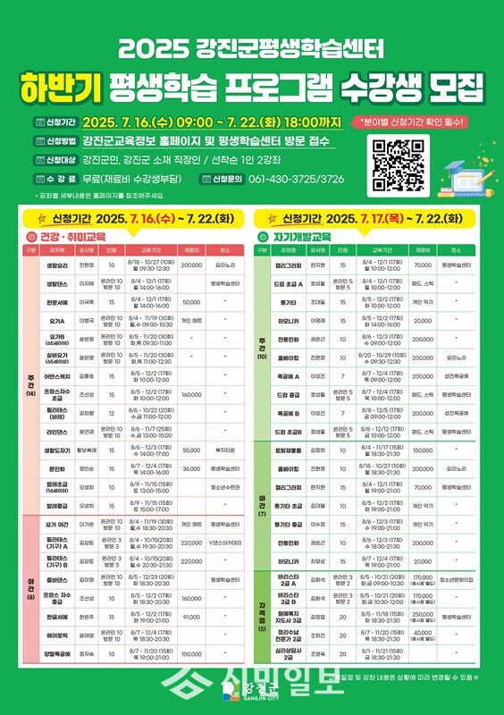 | ▲ 2025년 하반기 평생학습 프로그램 수강생 모집 안내 이미지 / 강진군 제공 |